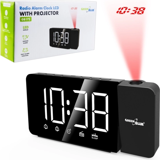 Det moderne radiovækkeur GreenBlue GB172 er et ideelt valg til både soveværelse og kontor. Det tilbyder et overskueligt LED‑display med store, hvide cifre, som er tydelige selv på længere afstand. Takket være tre lysstyrkeniveauer og mulighed for helt at slukke bagbelysningen tilpasser det sig perfekt til mørke omgivelser uden at forstyrre søvnen.