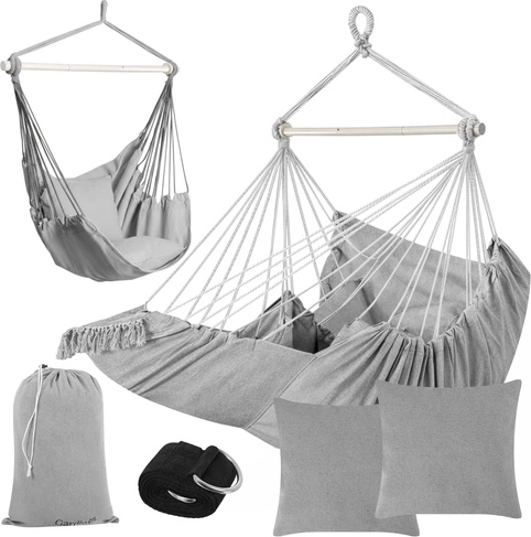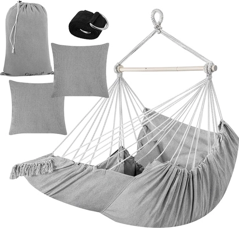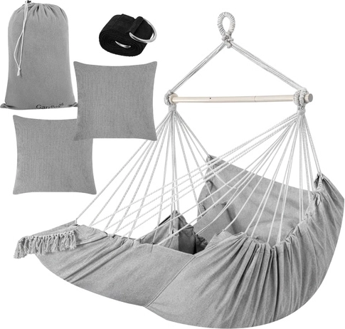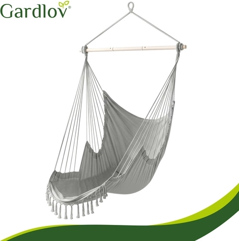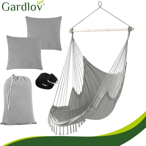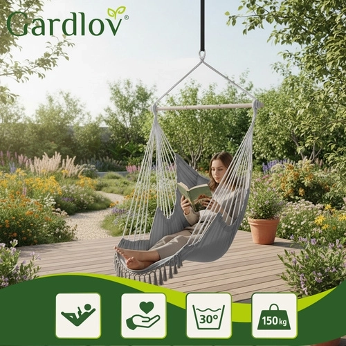 Nyd rolig afslapning hjemme og ude med den stilfulde hængende hængestol GARDLOV. Det slidstærke stof, stabiliserende tværstang og bæreevne på 150 kg sikrer sikker og behagelig gyngning. I pakken finder du 2 bløde puder, ophængsrem og praktisk pose til nem transport. Ideel til balkon, terrasse, have og stue.