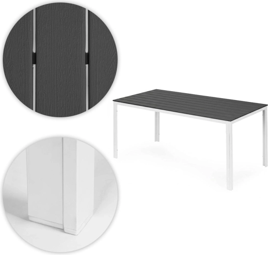 Nyd tiden udendørs med stil og uden bekymringer. Havestebordet MULTIGARDEN kombinerer et minimalistisk design i elegant grå‑hvid med praktiske materialer. Den robuste ramme af stålprofiler er solid og formstabil, mens polywood-bordpladen med mellemrum muliggør afvanding og troværdigt imiterer træstruktur.