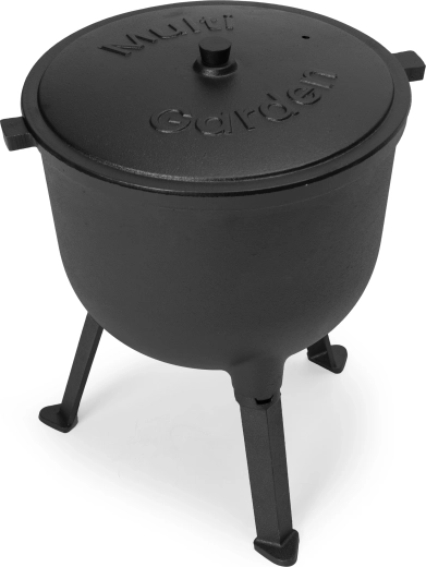Gryden står på stabile aftagelige ben, så du kan bruge den direkte over et ildsted. Uden ben er den også velegnet til en gasblus. Låg med ventilation gør det nemt at styre tilberedningen, og det integrerede håndtag sikrer sikker transport. Det holdbare støbejern tåler meget høje temperaturer og er skabt til mange års brug.