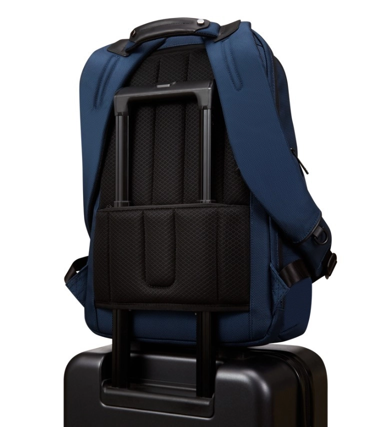 Organiseringen er maksimal effektiv: et separat polstret rum beskytter laptop op til 16″, der er en RFID-blokerende lomme til kort og dokumenter, en Softline-lomme til briller, Fidlock-lynlås til hurtig fastgørelse af nøglering samt to lukkelige flaskeholdere. Skjulte hurtigadgangslommer med sikkerhed og en bagagestrop til kuffertens teleskophåndtag gør pendling og rejser lettere.