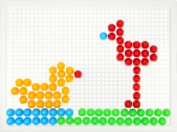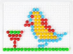 LENA mosaik med 100 farvede knopper er et ideelt valg til kreativ leg derhjemme og i børnehaven. Takket være det enkle system, hvor knopper sættes i en perforeret plade, træner børn koordinationsevner og tålmodighed, mens de skaber deres egne motiver – dyr, køretøjer eller fantasimønstre.