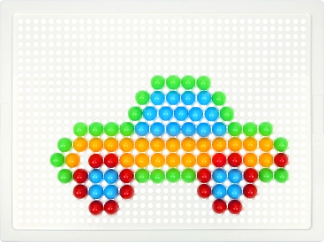 Knopper med en diameter på 10 mm i levende farver sidder sikkert i den solide plastplade på 21 × 16 cm for behagelig skabelse.