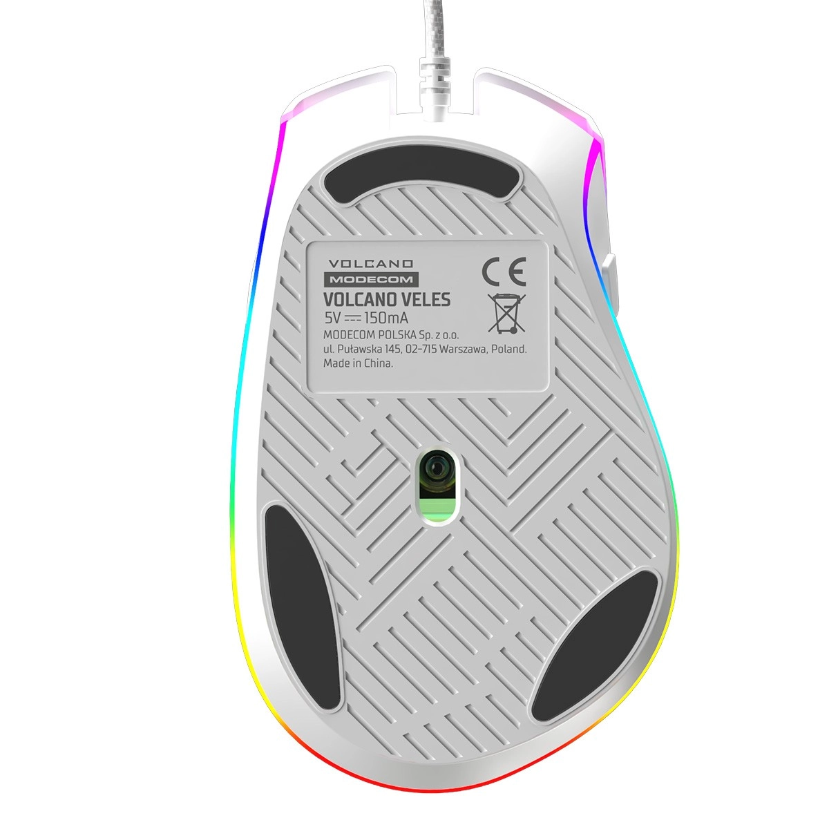 Volcano Veles er designet til gamere, der ønsker komfort, pålidelighed og stil. Den ergonomiske krop til højrehåndede, teksturerede sider og en afbalanceret vægt på 102 g sikrer et fast greb og høj komfort selv under lange gaming-sessioner. RGB LED-belysning med 16,7 mio. farver giver din opsætning et personligt præg.