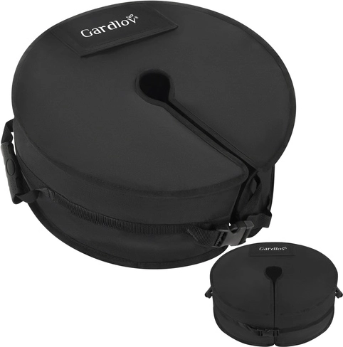 Nem håndtering takket være to håndtag, en bred påfyldningsåbning til hurtig efterfyldning af sand og lynlås, velcro og solid spænde for sikker lukning omkring stangen. Den runde form med centralt hul og slids omfavner bekvemt de fleste standardfødder og -stænger.