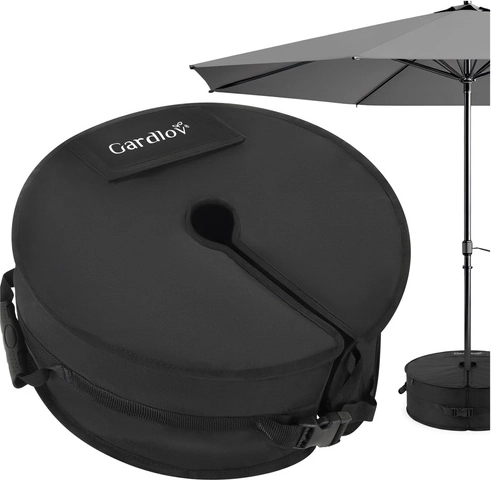 Hold din haveparasol sikkert på plads med GARDLOV sandfyldt ballasttaske. Når den er fyldt, giver den op til 40 kg ekstra vægt for stabilitet selv i blæsevejr. Slidstærkt Oxford-stof, vandafvisende udførelse, forstærkede sømme samt praktiske håndtag og spænder for nem transport og hurtig fastgørelse.
