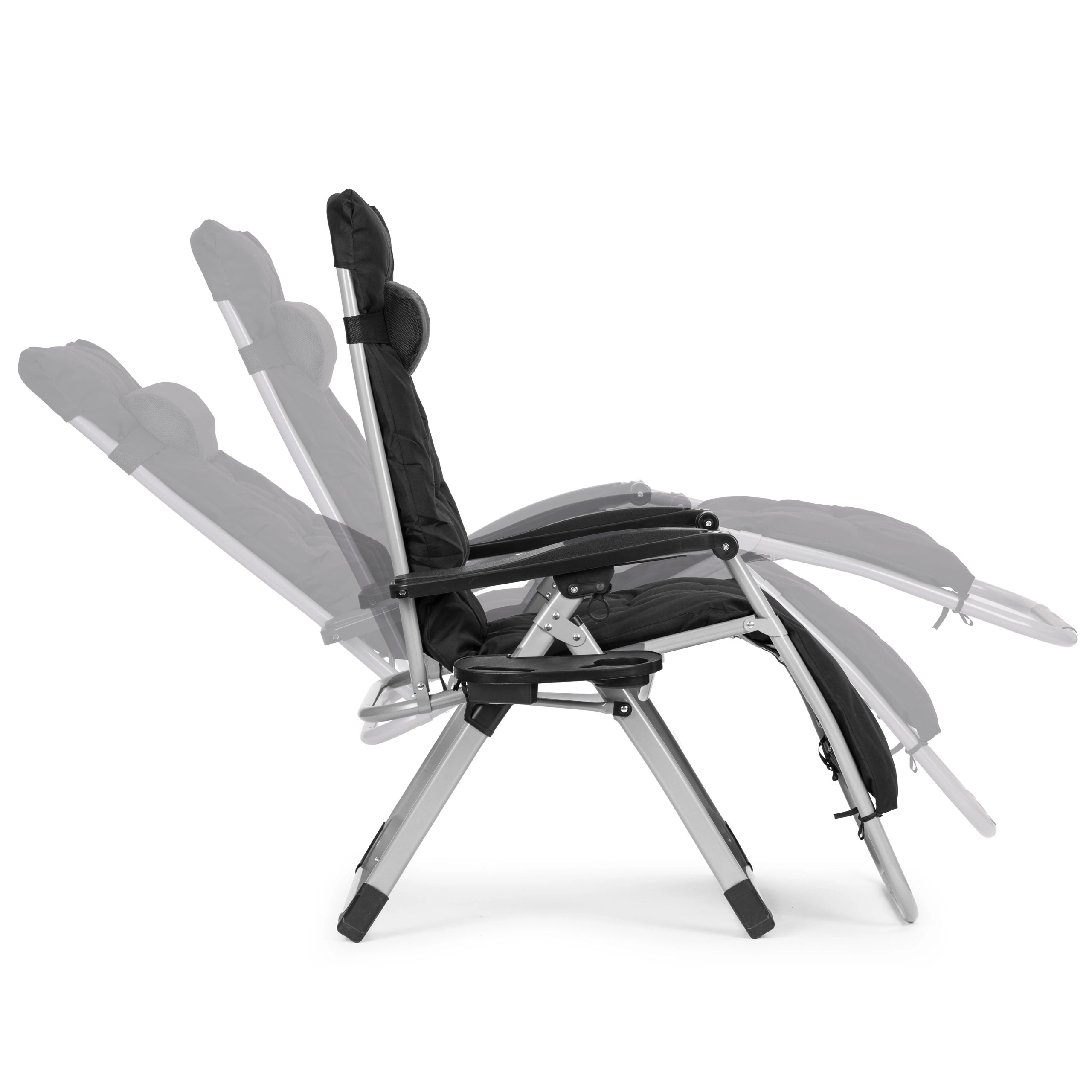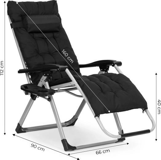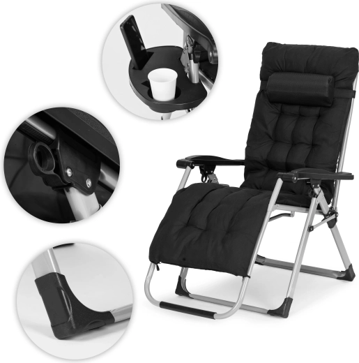 Nyd den perfekte afslapning i haven, på terrassen eller ved poolen med den komfortable MultiGarden-liggestol. Den tilbyder Zero-Gravity-teknologi for fuld kropsaflastning, justerbart ryglæn, sammenklappelig konstruktion for nem transport og en holdbar stålramme med pulverlakering. For maksimal komfort medfølger en blød pude med nakkestøtte og en sidebakke til drik og telefon. Bæreevne 120 kg.