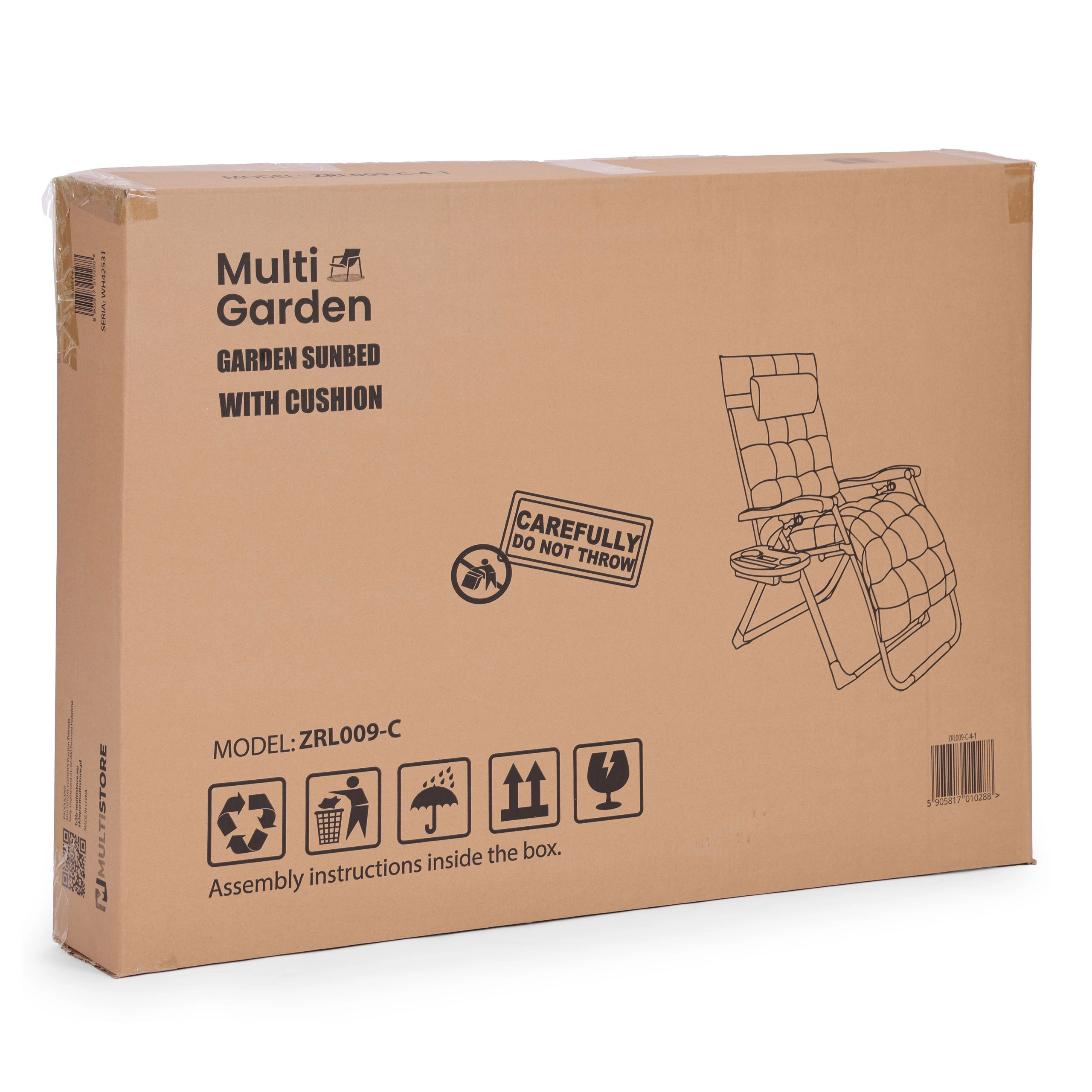 Slap af i frisk luft med maksimal komfort. MultiGarden-solstolen kombinerer en holdbar stålkonstruktion med pulverlakering og åndbart Textilene-stof med PVC, som tørrer hurtigt, modstår fugt og tilpasser sig kroppen behageligt. Medfølgende er en blød pude med nakkestøtte, der dækker både sæde og ryg for endnu mere behagelig hvile.