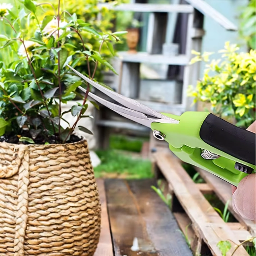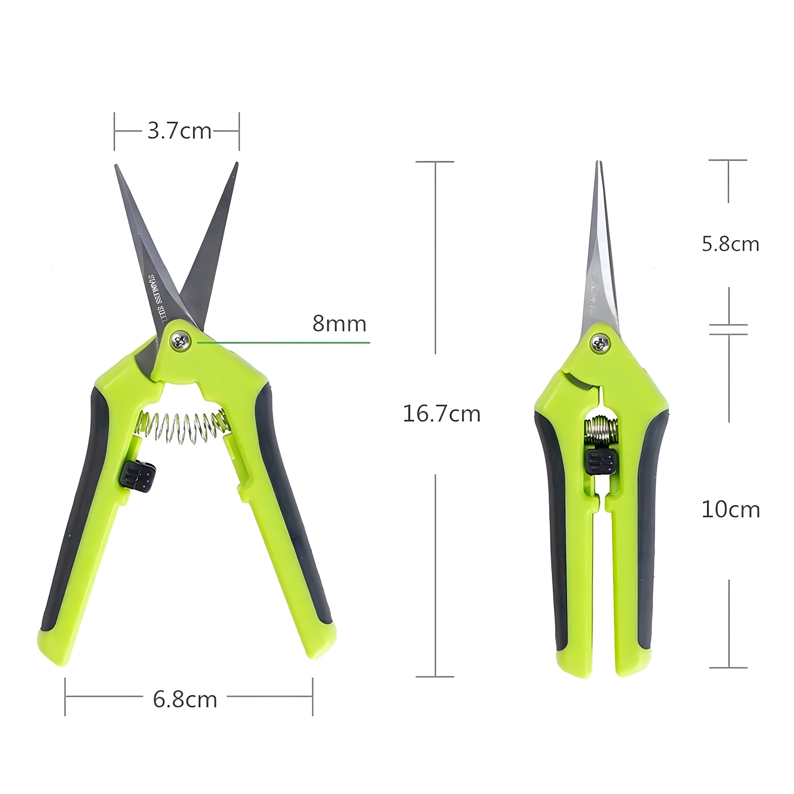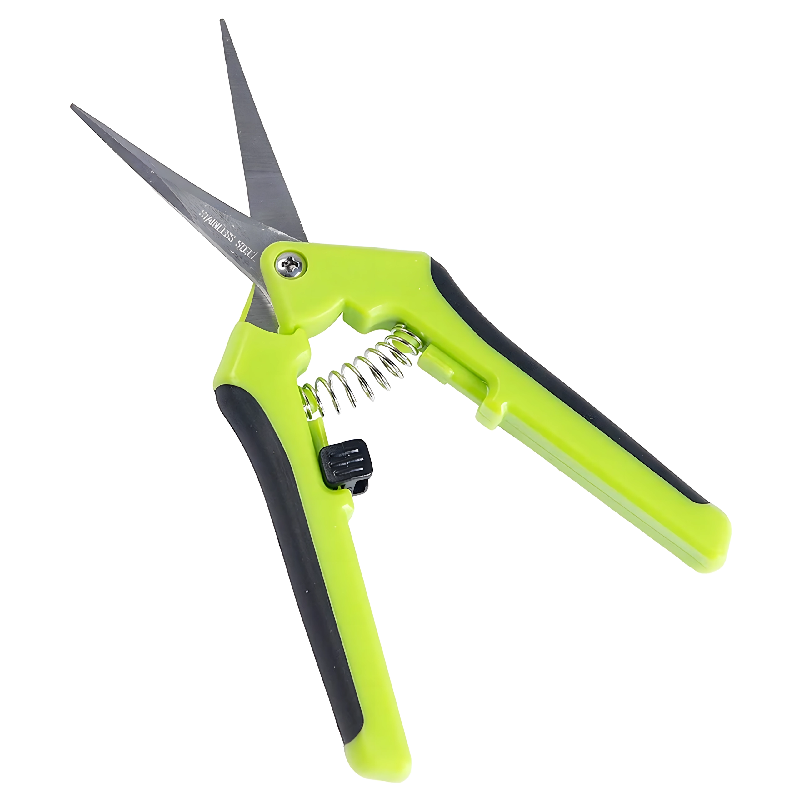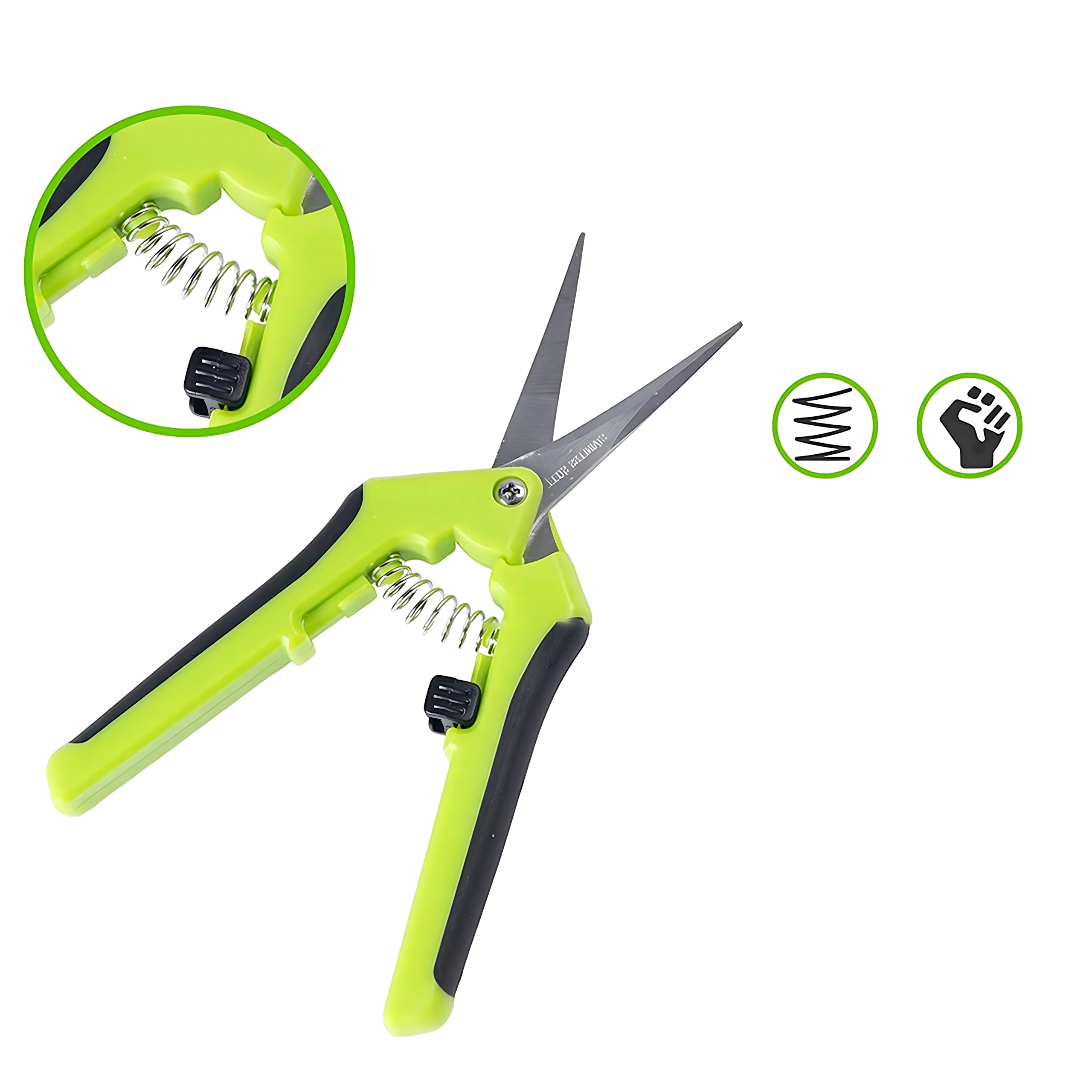 Denne lette og præcise havesaks er ideel til fin formning af stueplanter, krydderurter, blomster og unge skud i haven. De lange, spidse blade i rustfrit stål giver rene snit uden floss, mens fjeder-mekanismen fører bladene tilbage efter hvert klip – for hurtigt, komfortabelt og enhåndsbetjent arbejde.