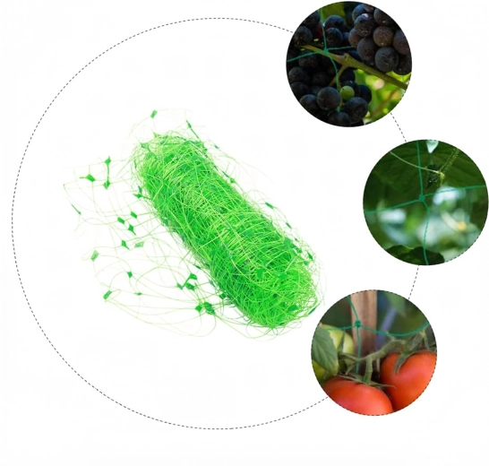 Installationen er enkel – nettet kan afkortes efter behov, fastgøres til støtter eller konstruktioner i drivhuset, og skuddene kan gradvist bindes op. Det er ideelt til agurker, bønner, ærter, tomater og dekorative klatreplanter. Det tætte gitter giver mange støttepunkter til naturlig omvikling af stængler.