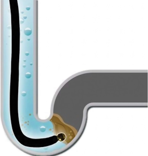 Den fleksible slange passerer let gennem bøjninger og længere rørstræk, så den når helt ind til problemets kerne og genopretter et frit gennemløb.