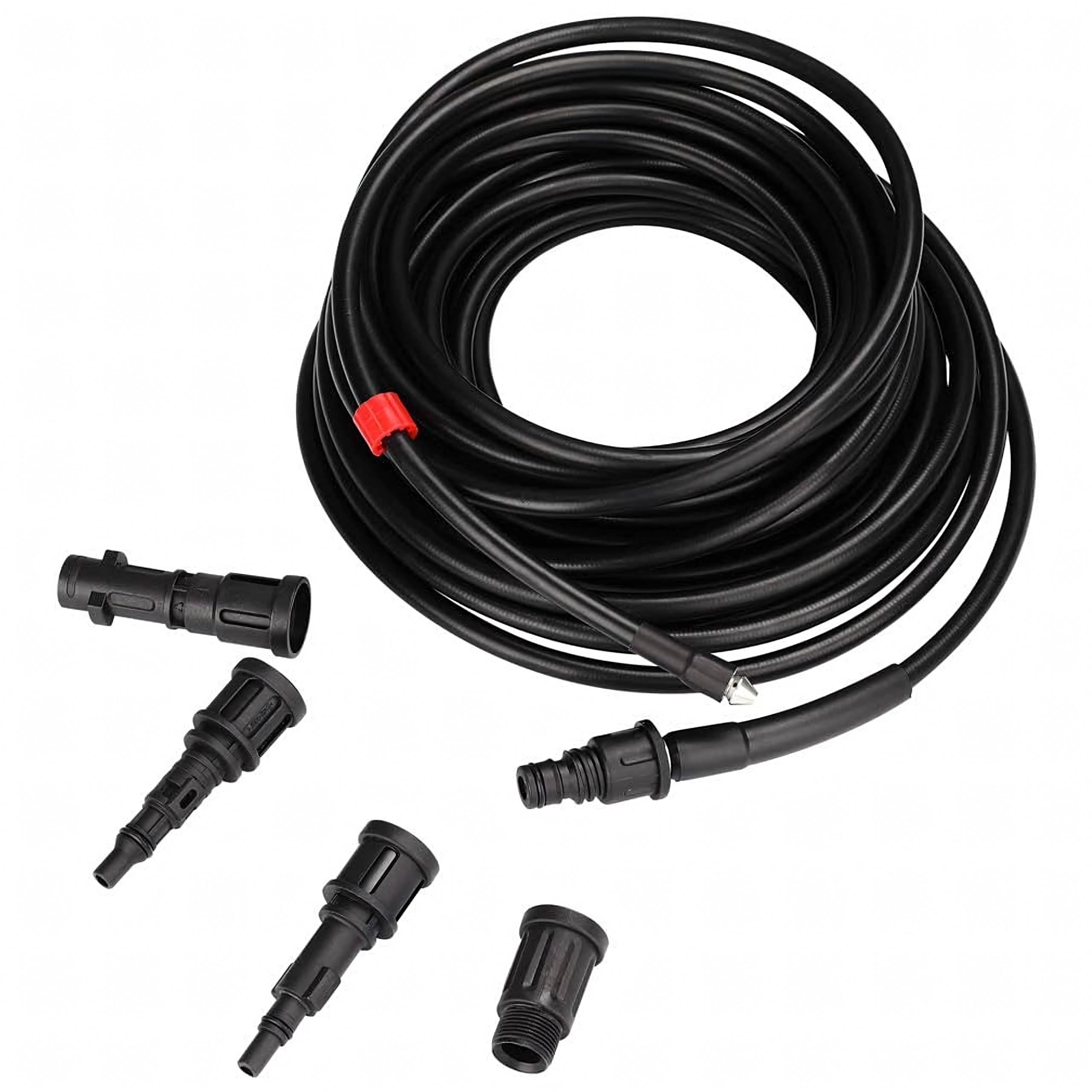 Takket være sæt af adaptere er den kompatibel med forskellige mærker af højtryksrensere. Den holdbare slangekonstruktion sikrer lang levetid, tæt tilslutning uden lækager og pålidelig gennemstrømning. Nem indsætning og føring i rør giver bekvemt arbejde uden at tilkalde dyr service.