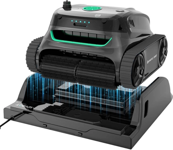 Den robotstyrede poolstøvsuger WYBOT S2 Pro bringer førsteklasses automatisering og præcis rengøring til pools på op til 300 m². Takket være trådløs undervandsopladning undgås korrosion af porte og mekaniske skader. Ladestationen forstærker desuden signalet og sikrer stabil styring via WYBOT-appen, selv under vand. S2 Pro vender altid automatisk tilbage til basen og er klar til næste rengøring uden unødig håndtering.