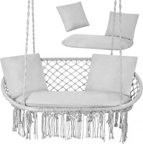 Nyd maksimal komfort i din hængestol af typen “rede” med GARDLOV-puder til to personer. Sættet indeholder et stort sæde og to bløde rygpuder, som sikrer enestående komfort, stabil siddeoplevelse og et stilfuldt gråt design velegnet til have, terrasse og altan. Takket være vaskbare betræk (30 °C) og en holdbar blanding af polyester og bomuld er puderne ideelle til daglig afslapning både inde og ude.