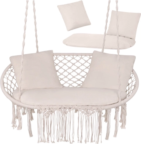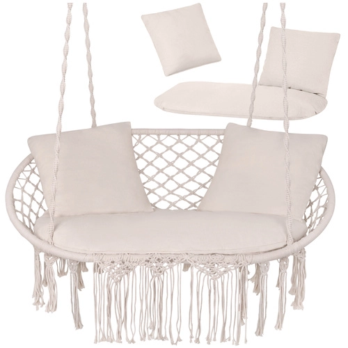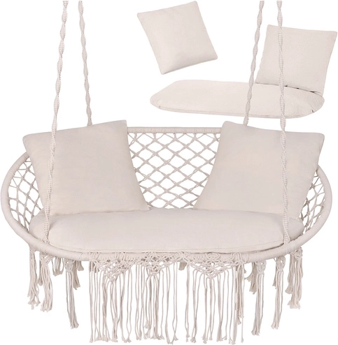 Forvandl din hængestol til en ægte oase af afslapning. Det todelte sæde og to kvadratiske puder fylder siddeområdet ud og sikrer stabilitet og blød komfort, når I slapper af to sammen. Det universelle design og de holdbare materialer passer til have, terrasse, altan og indendørs.