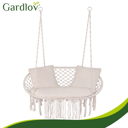 Det store sæde suppleret med to bløde puder giver støtte til ryg og hoved, så du kan nyde afslapningen i hængestolen fuldt ud.