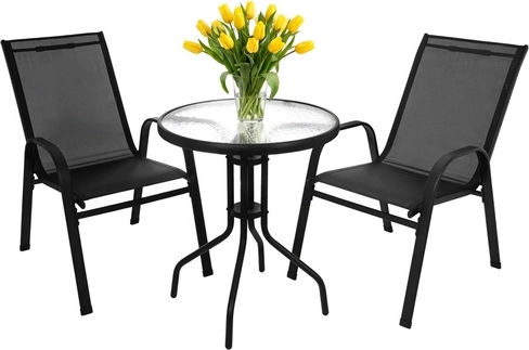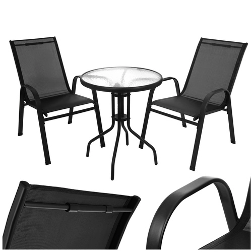 Skab et hyggeligt sted for to på altanen, terrassen eller i haven. Dette praktiske 3-delte bistrosæt med et rundt bord i hærdet glas og to luftige stole har en stabil metalkonstruktion med pulverlakering, er vandtæt, UV-bestandigt og let at vedligeholde. Ideelt til morgenkaffe, eftermiddagsafslapning og aftenhygge.
