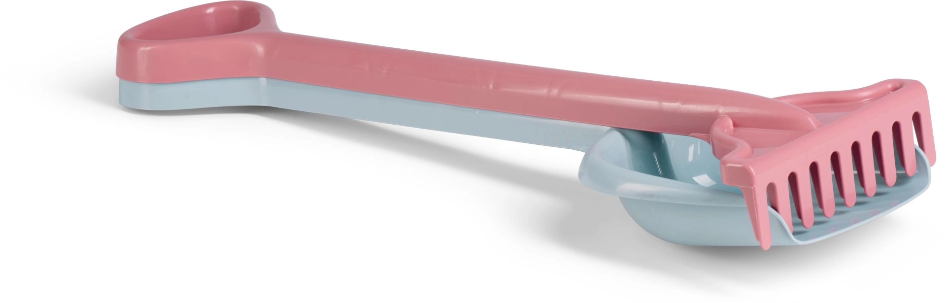 Ergonomiske former med D-greb og glatte, afrundede kanter sikrer behagelig og sikker brug – selv for de mindste. Takket være den lave vægt på 0,288 kg og længden på 56 cm er både skovl og rive lette at håndtere på stranden og i sandkassen.