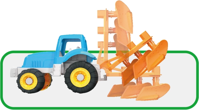 Den bevægelige bagplov “arbejder” virkelig – børn kan pløje sand eller jord og lave furer som på en rigtig mark.