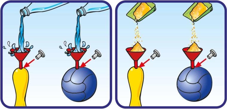 Sættet er designet til nem brug: påfyldningsåbningerne lukkes efter fyldning med små propper, som er en del af den sorte holder til keglerne. Med en keglehøjde på 27 cm er spillet overskueligt selv for mindre børn og understøtter udvikling af motorik, koordinering og præcision.
