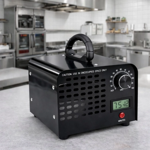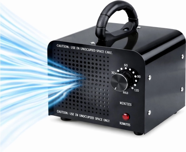 Betjeningen er yderst enkel – den mekaniske timer 1–120 minutter gør det muligt at tilpasse cyklussen til områdets størrelse og graden af forurening. Når den indstillede tid er gået, slukker enheden automatisk. Den massive metalkonstruktion, stabile fødder og indbygget ventilator sørger for lang levetid og jævn fordeling af ozon.