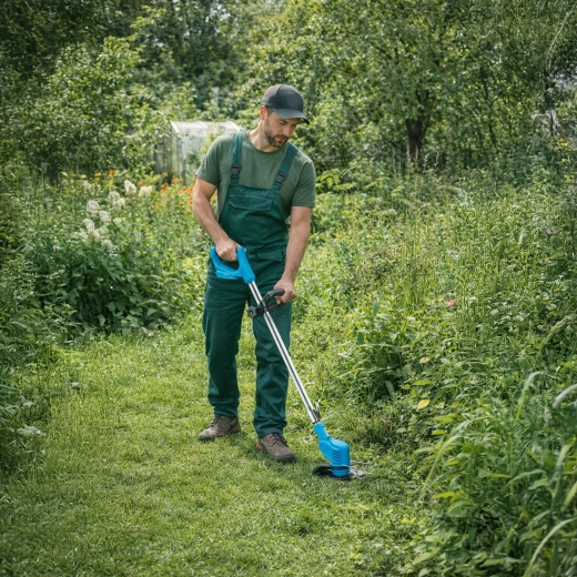 Let og samtidig en kraftig batteridrevet græstrimmer til præcis vedligeholdelse af kanter på plæner, stier og svært tilgængelige områder. Takket være den justerbare teleskopstang, det ergonomiske håndtag og det rige tilbehørssæt klarer du både fin trimning og mere krævende buskads. To Li‑ion batterier og en hurtigoplader sikrer problemfrit arbejde uden kabel.