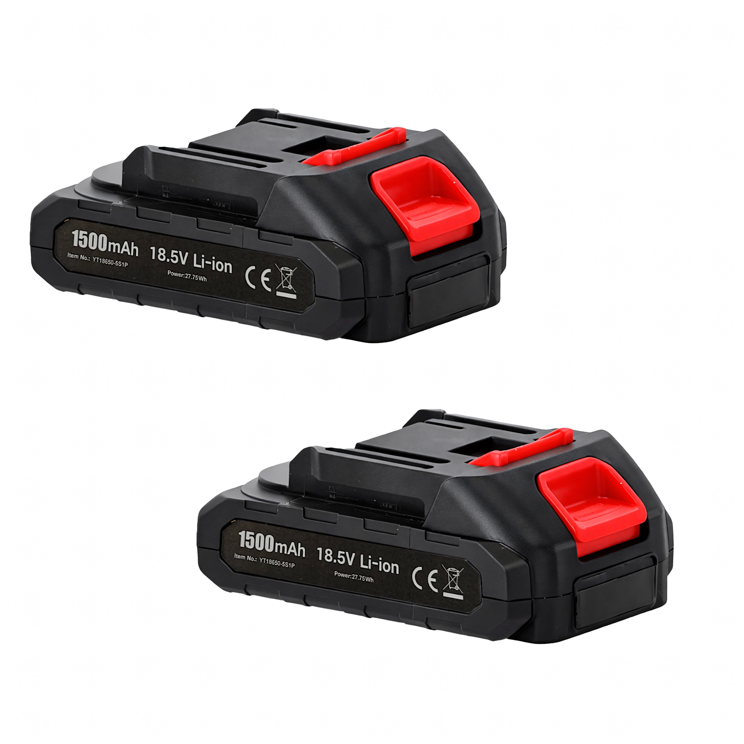 Sættet indeholder 2× Li‑ion batteri til problemfri udskiftning og længere uafbrudt arbejde i haven.