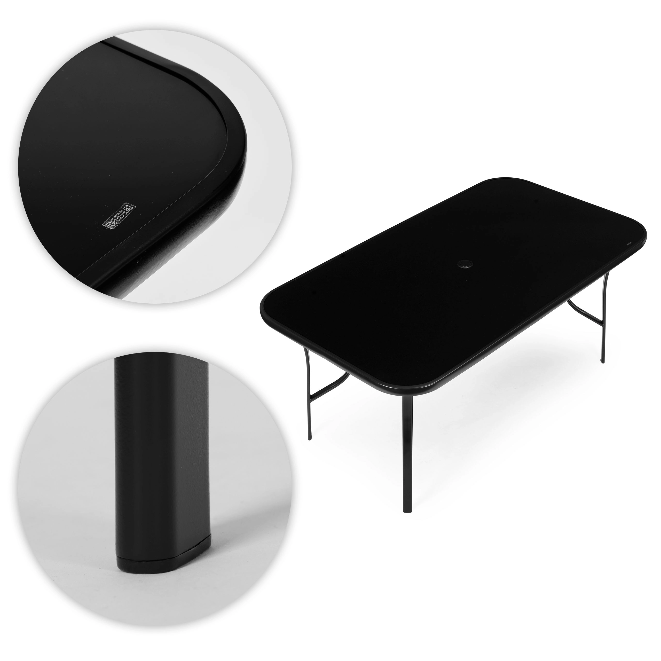 Hærdet glas i sort ramme er holdbart, elegant og nemt at rengøre. Ideelle mål til familiemiddage og sammenkomster med venner.