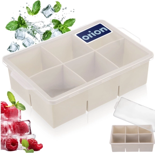 Opdag den ideelle form til dig, der elsker perfekt afkølede drinks. Denne beige silikoneform med låg laver seks XXL isterninger på 5 × 5 × 5 cm, som smelter langsommere og giver langvarig køling af vand, lemonader, cocktails og premium destillater.