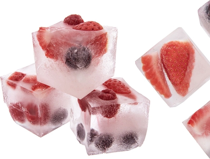 Seks store terninger på 5 × 5 × 5 cm smelter langsommere, så din drik forbliver koldere i længere tid uden unødig fortynding af smagen.