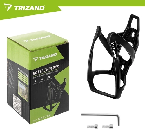 Den lette og holdbare TRIZAND flaskeholder holder flasken sikkert på plads og giver samtidig hurtig adgang til drikke under kørsel. Takket være universel hulafstand på 65 mm, lav vægt på 55 g og nem montering (unbrakonøgle og skruer medfølger) er den ideel til de fleste cykler og elcykler. Materialet PP sikrer høj holdbarhed og kompatibilitet med standardflasker 500–1000 ml.