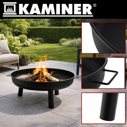 Det store bålsted fra KAMINER med en diameter på 80 cm er et ideelt valg til aftenhygge med familie og venner. Den brede, lave skål af slidstærkt metal sikrer tryg og kontrolleret forbrænding af brænde eller trækul, mens trefoden giver høj stabilitet og god frihøjde over underlaget.