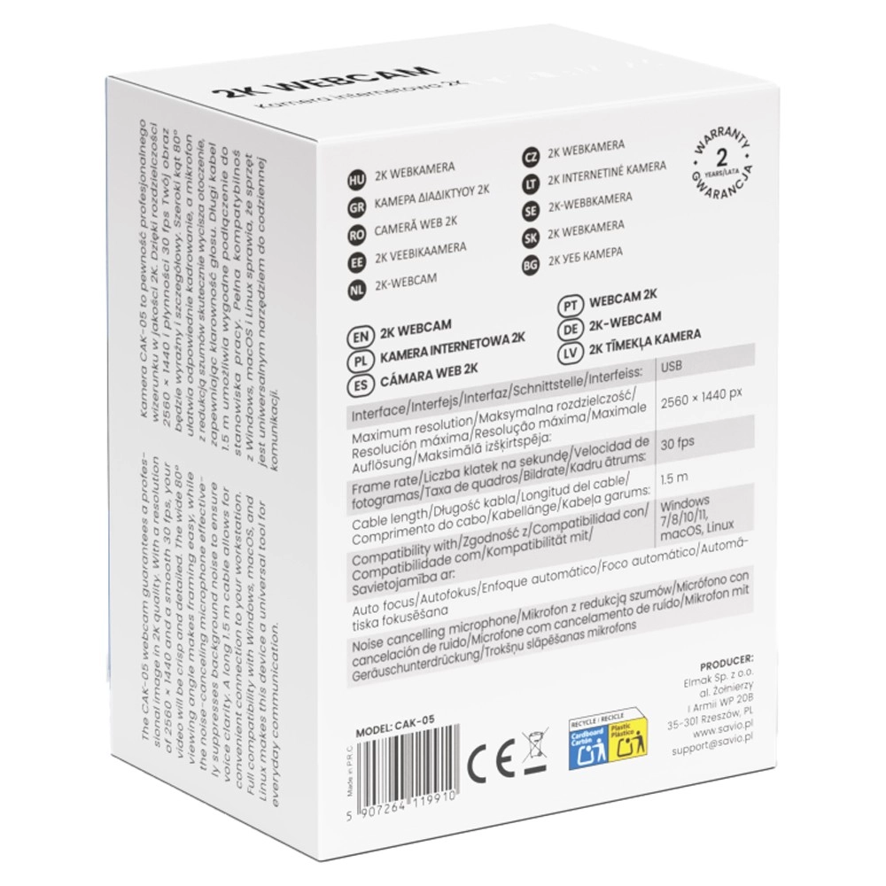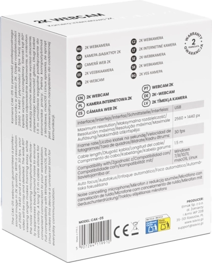 Webkameraet CAK‑105 er ideelt til fjernarbejde, online-undervisning og videoopkald med familien. Det skarpe billede i 2K fremhæver detaljer og virker professionelt selv i krævende konferenceværktøjer.