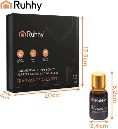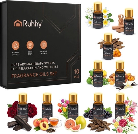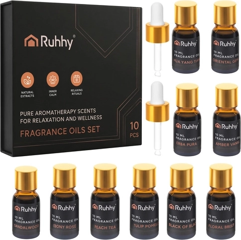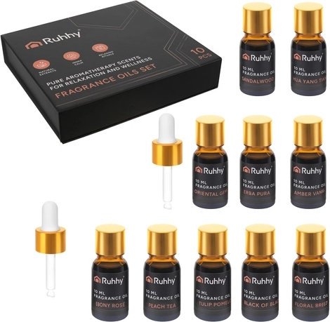 Sættet tilbyder 10 forskellige aromaer – fra blomstrede og friske til varme og orientalske – så du nemt kan vælge den atmosfære, der passer præcis til dit humør.
