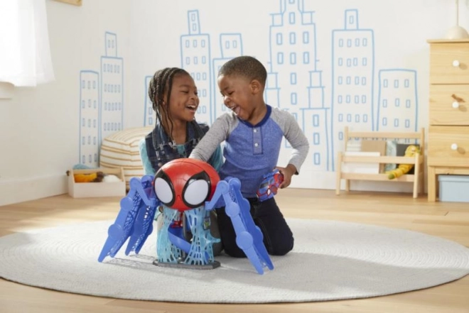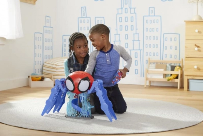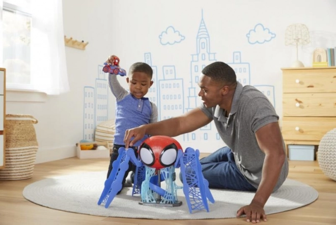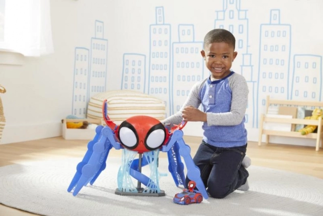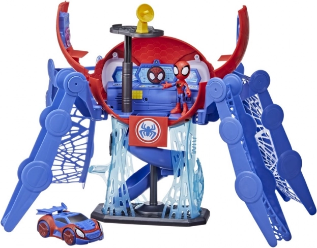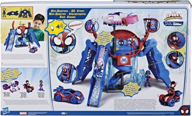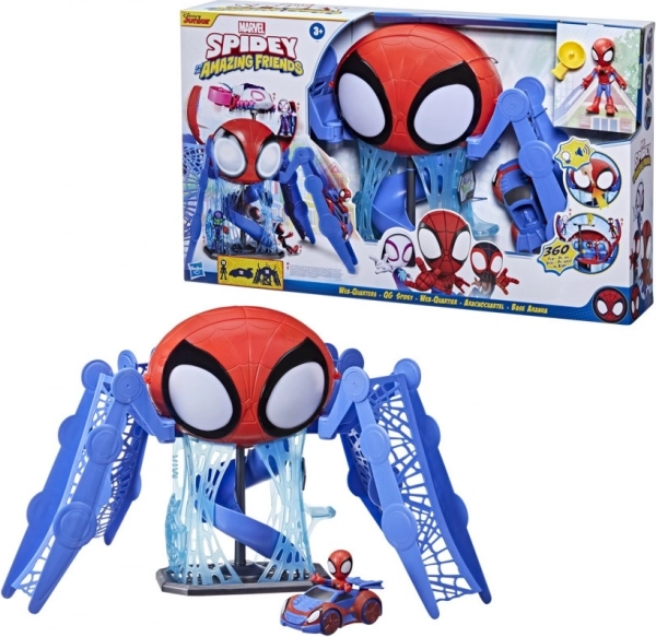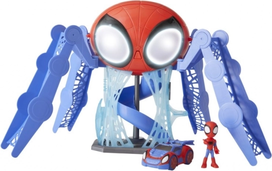 Oplev et rigtigt spindelvævseventyr med dette legesæt, Spindebasen, inspireret af serien Spider-Man og hans fantastiske venner på Disney Junior! Du ser denne utrolige Spindebase i hvert eneste afsnit. Den ligner en kæmpe edderkop med fire enorme ben, som let kan bøjes for at skabe ramper, hvor køretøjerne kan bremse og køre. Spindebasen har lys- og lydeffekter og er kompatibel med andre køretøjer fra Spider-Man og hans fantastiske venner. Hver figur har sin egen unikke plads her, for eksempel et spindel-laboratorium, et detektivkontor eller endda et fængsel. Der er kort sagt masser af plads til, at Spider-Man og hans venner kan løse fælles missioner! Legesættet indeholder en 10 cm Spider-Man-figur og en spindel-motorcykel.