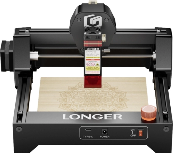 Graver på træ, akryl, læder, tekstil, metal og keramik, og skær tyndere materialer op til 12 mm (afhængigt af type og densitet). Enheden leveres forudsamlet, med en praktisk 2 mm fokuseringsblok, og understøtter formaterne JPG, PNG, BMP og DXF i programmerne LaserGRBL og LightBurn.