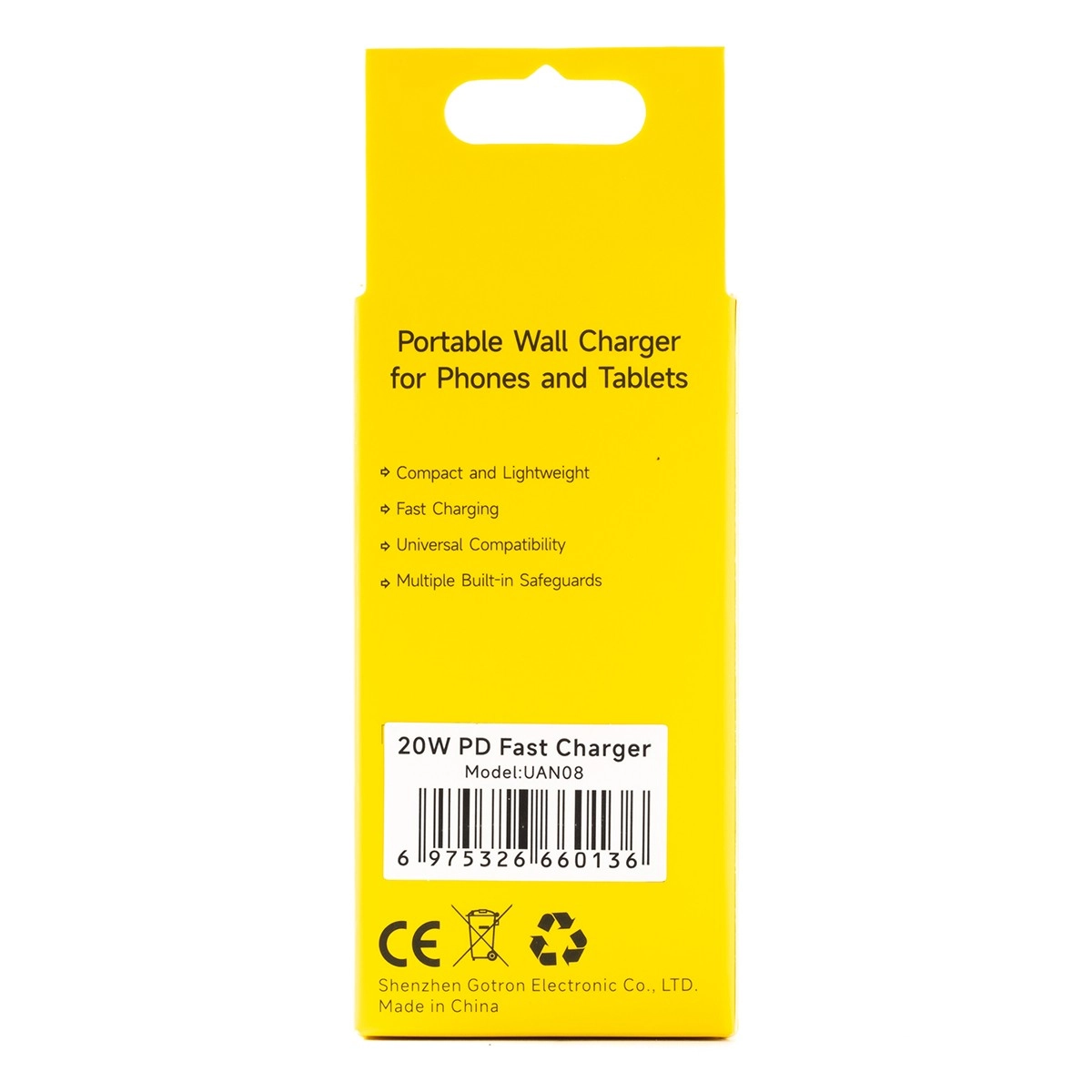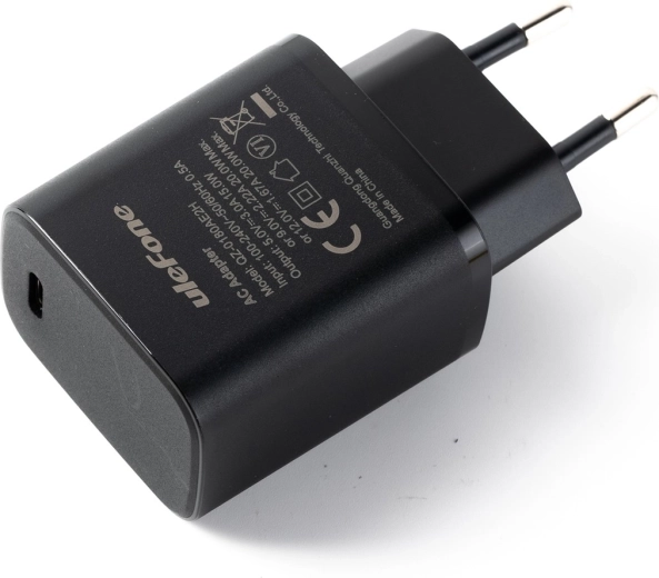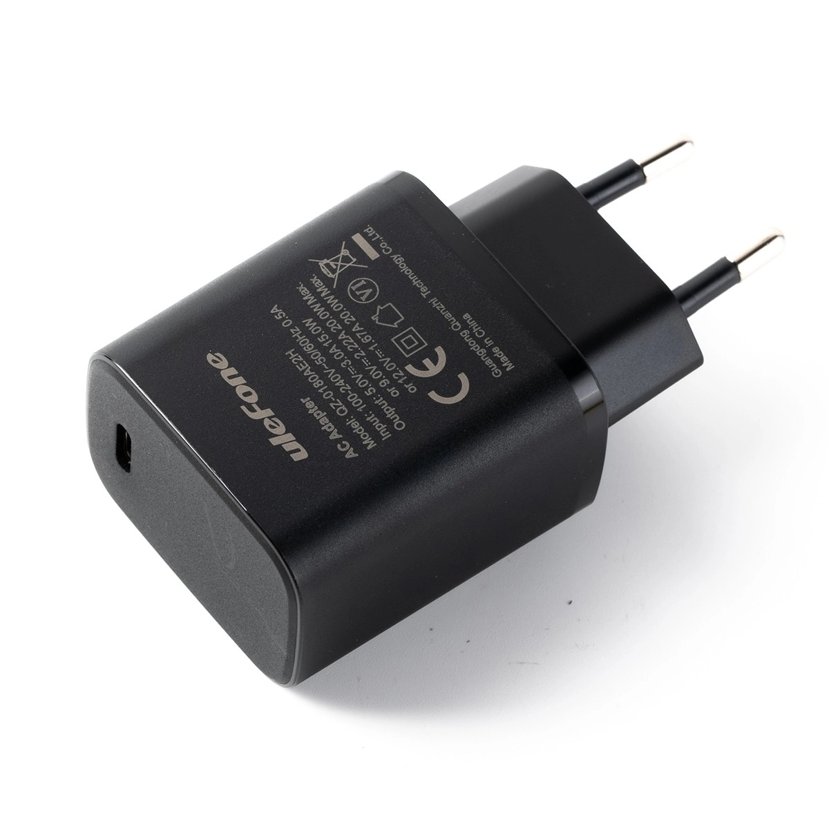 Den kompakte Ulefone vægoplader med 20 W effekt og USB‑C-port leverer hurtig og sikker opladning af telefoner og tablets, der understøtter USB Power Delivery. Takket være flerniveaus beskyttelse mod overspænding, overophedning og kortslutning er den ideel til daglig brug og på rejser.