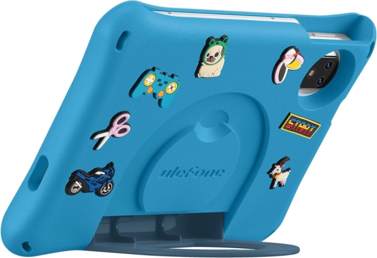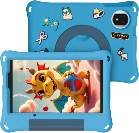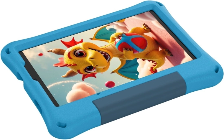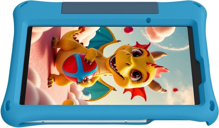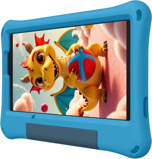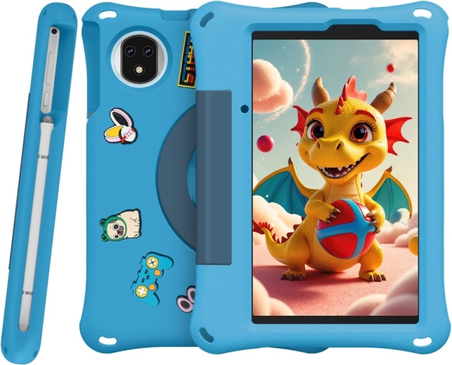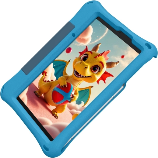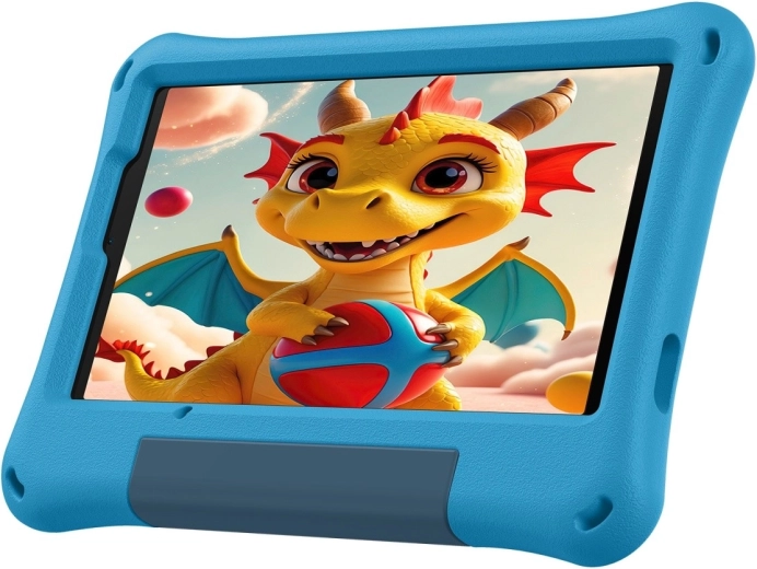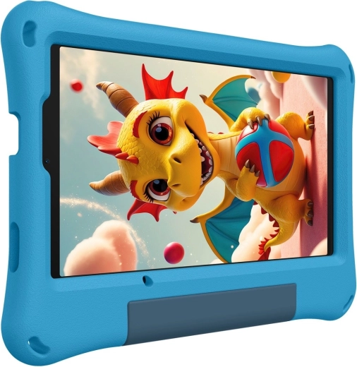 Robust børnetablet med 8" skærm, 4G-forbindelse og stor hukommelse 4/128 GB, leveres med et kraftigt etui. Takket være stødabsorberende kanter, integreret stander og let greb er den ideel til spil, videoer og læring. Stødsikkert etui, integreret stander, sikkert greb og rigelig ydeevne og lagerplads til børneunderholdning og uddannelse.