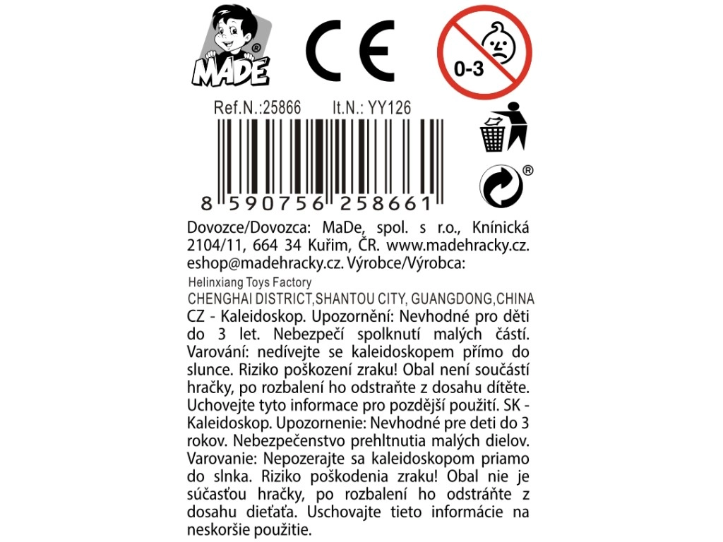 Opdag magien ved farverige mønstre med dette plast-kalejdoskop til børn fra 3 år. Det tilbyder 5 forskellige farvemotiver, kræver ingen batterier og er klar til øjeblikkelig underholdning hvor som helst. Takket være de kompakte mål 4,5 × 4,5 × 19,5 cm passer det perfekt i børnehænder og som et attraktivt supplement til en displayboks i butikker.