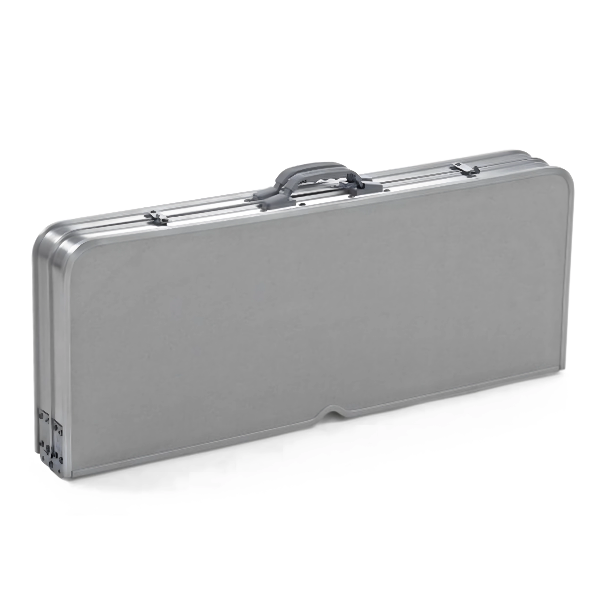 Efter sammenklapning bliver hele sættet til en flad kuffert med håndtag. Den lette aluminiumsramme gør det nemt at bære og opbevare.