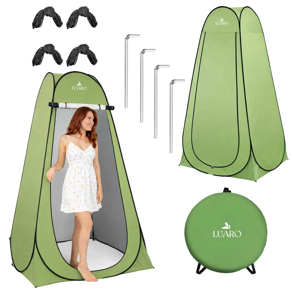 Det praktiske og mobile pop-up telt LUARO giver en øjeblikkelig privat kabine til omklædning, brus eller toilet på strand, campingplads og festival. Takket være den selvopslående konstruktion sætter du det op på få sekunder, det er let, vindbestandigt og nemt at transportere i den medfølgende taske.