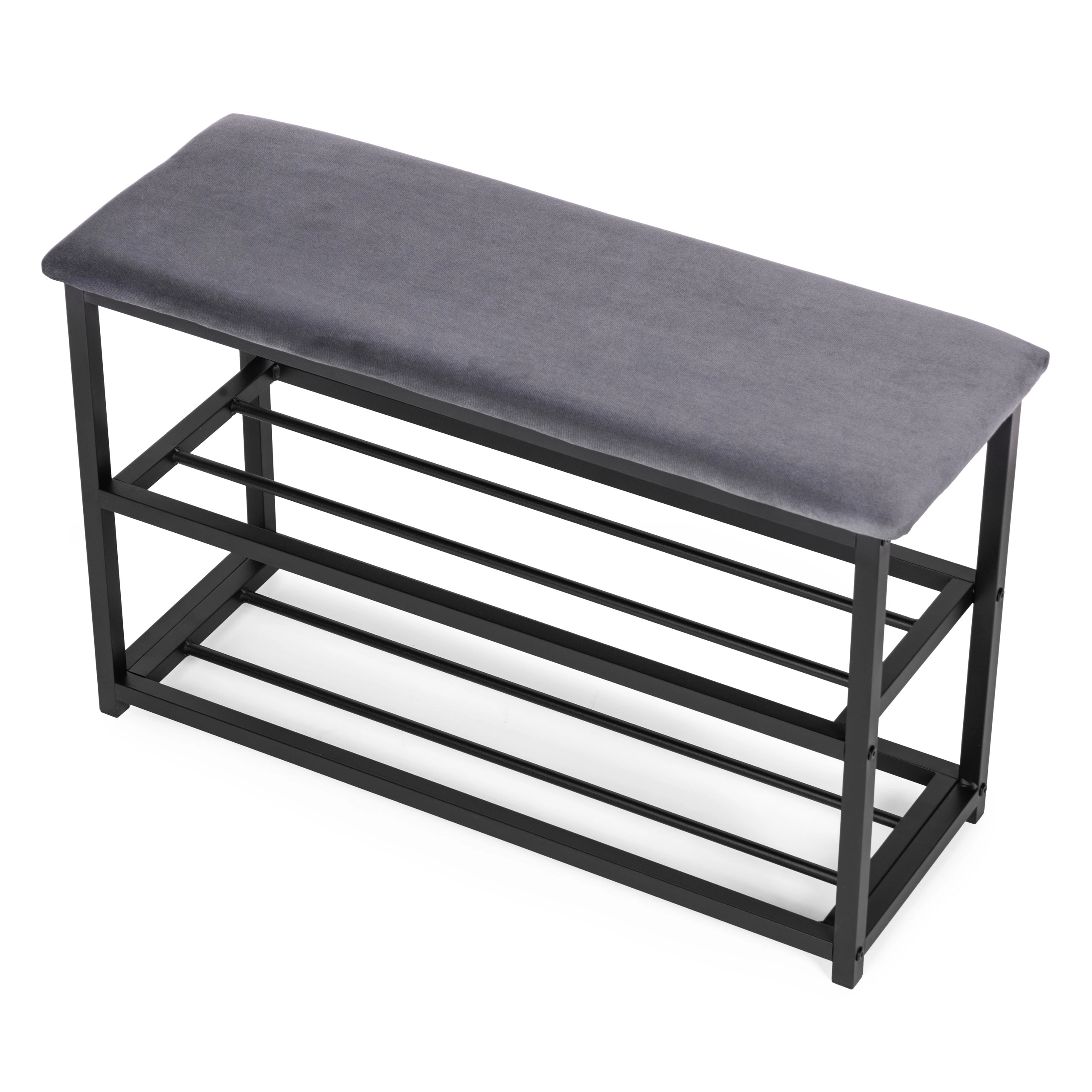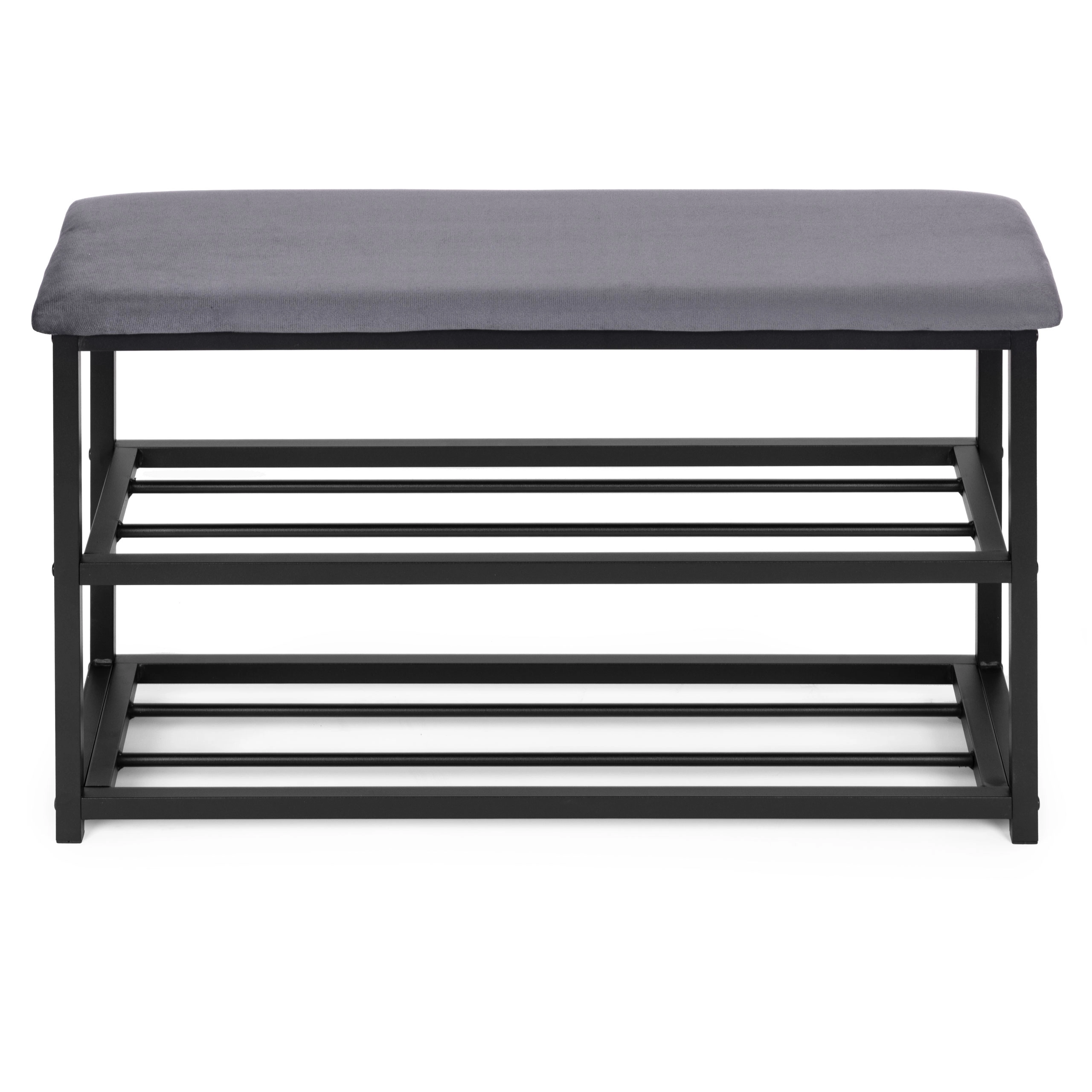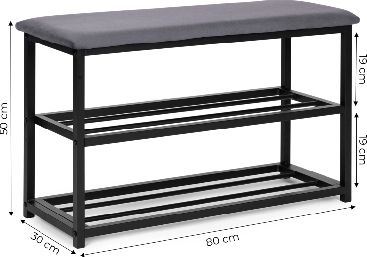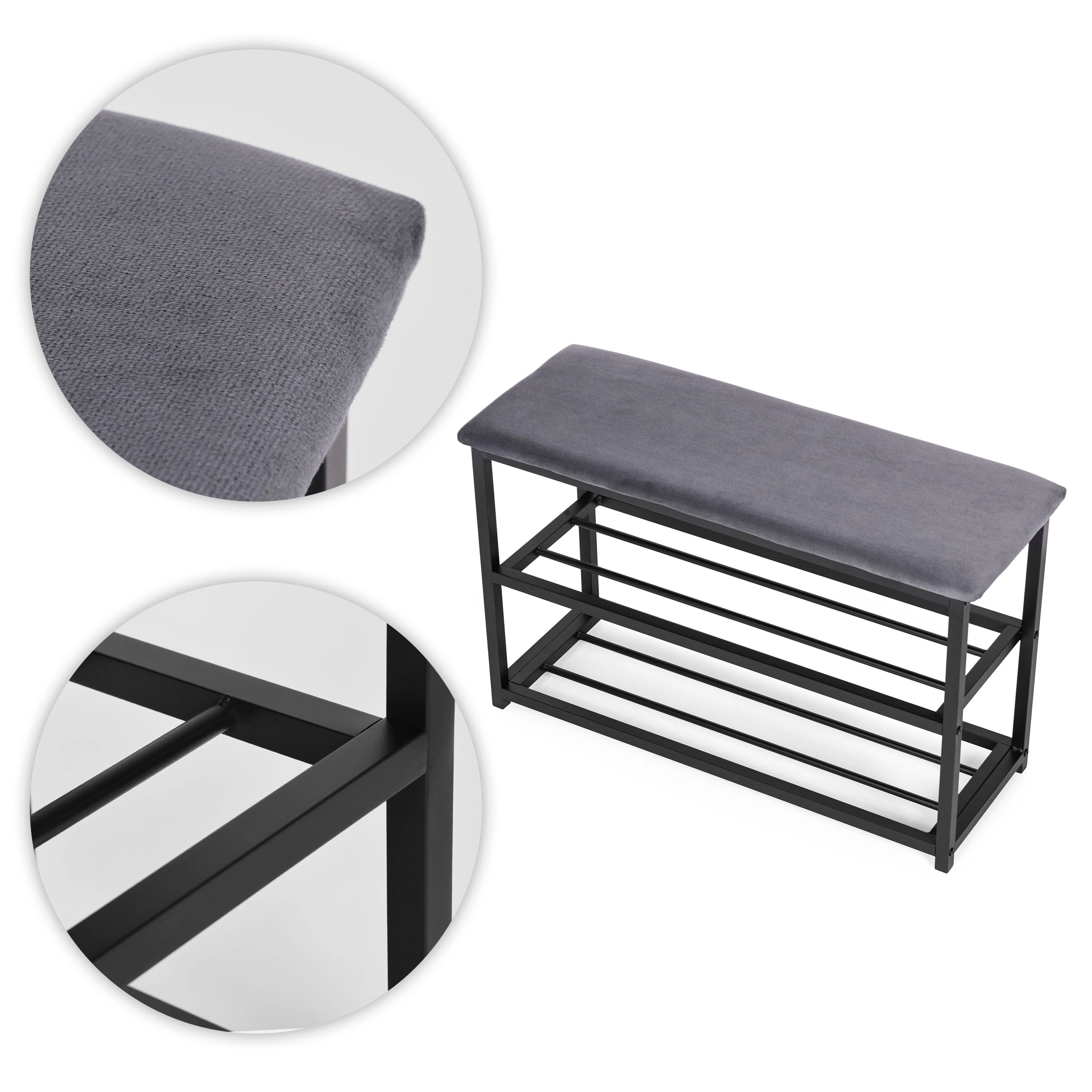 Den stilfulde skobænk ModernHome kombinerer opbevaringsplads og behagelig siddeplads i ét. Med to hylder rummer den op til 8 par sko, og dens bløde sæde med velourbetræk gør det nemt at tage sko på. Den pulverlakerede stålramme sikrer stabilitet og lang levetid, mens de åbne hylder giver overblik og ventilation af fodtøj. Ideel til entré, garderobe og klædeskab.