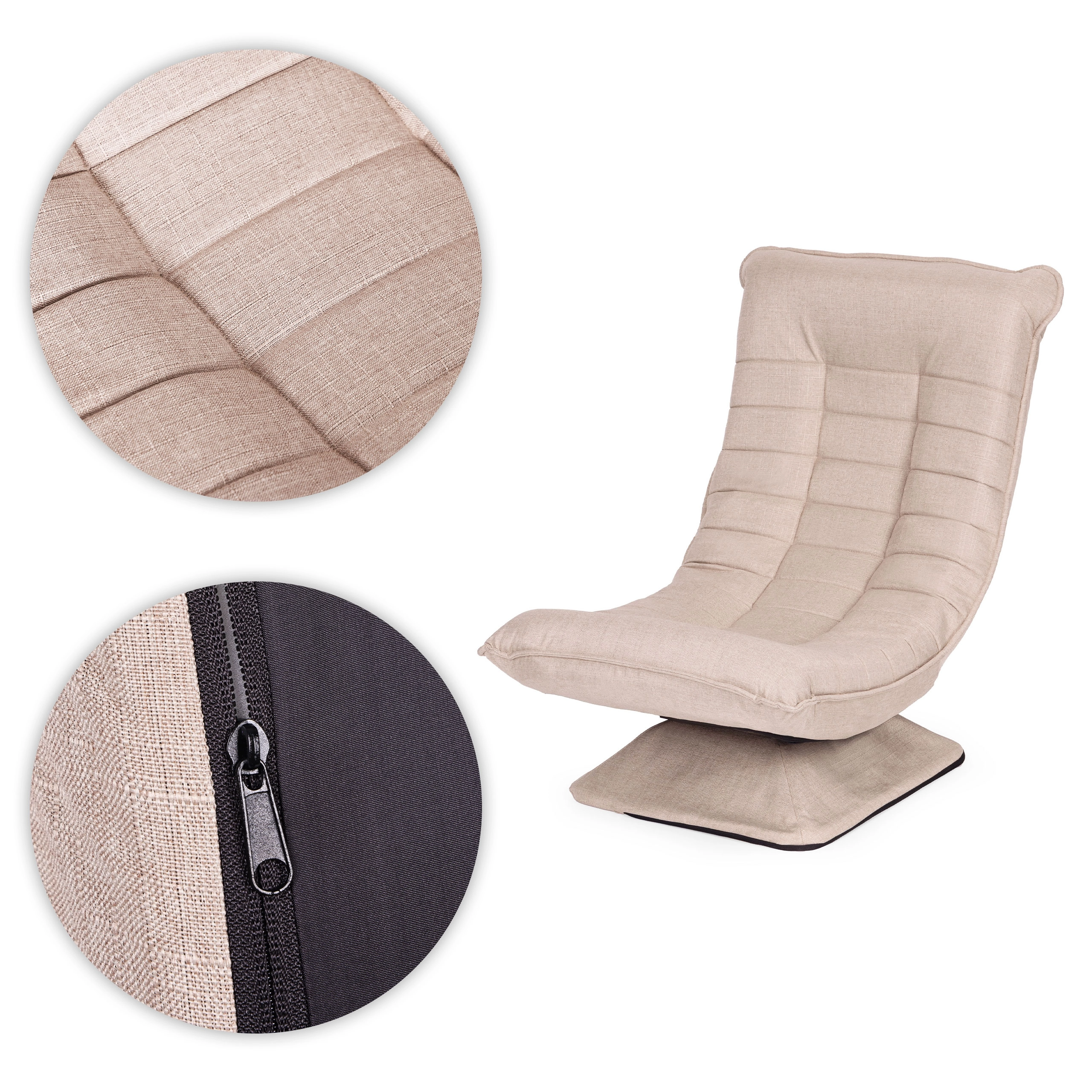 Takket være 360° rotation får du fri bevægelse, mens 4 tiltbetrin hurtigt tilpasses din aktuelle aktivitet – fra fokuseret siddestilling til afslappet loungen. Aftageligt betræk med lynlås i hørstof kan vaskes ved op til 30 °C, så vedligeholdelsen er enkel, og stolen forbliver som ny i lang tid.