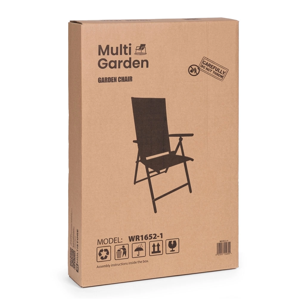 Den stilfulde og praktiske MULTIGARDEN-stol er ideel til have, terrasse og altan. Den robuste ramme af pulverlakeret stål sikrer stabilitet, mens textilene-nettet former sig efter kroppen, ventilerer godt og tørrer hurtigt – perfekt selv på varme dage. 7 ryglænspositioner justeres nemt ved at løfte armlænene, så du på et øjeblik kan skifte fra spisestilling til afslapning.