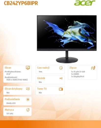 Takket være HDMI, DisplayPort og VGA tilslutter du nemt pc, bærbar eller spillekonsol. De smalle rammer og det rene, mat-sort design sparer plads på skrivebordet og ser elegant ud i enhver arbejdsplads.