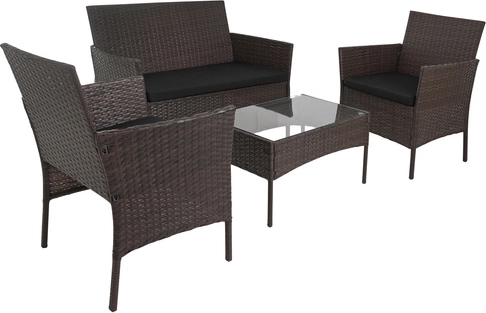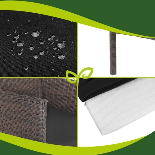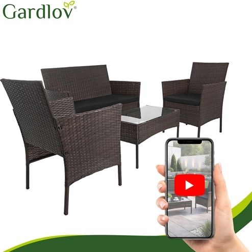 Leder du efter et komfortabelt og elegant sæt til terrasse, altan eller have? Havesættet Gardlov i brun farve kombinerer en holdbar konstruktion af galvaniseret stål med technorattan, behagelige vandafvisende puder og et stilfuldt bord med 5 mm glas. Skab et hyggeligt sted til hele familiens afslapning med moderne design og nem vedligeholdelse.