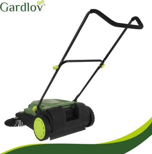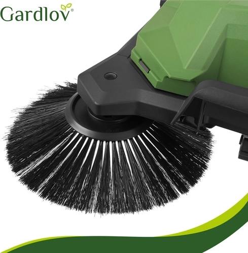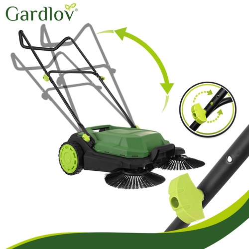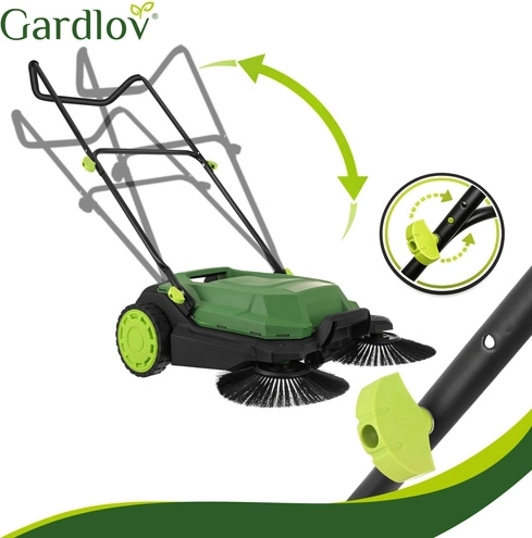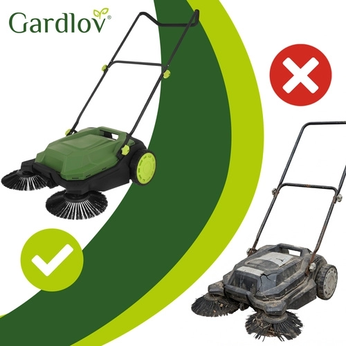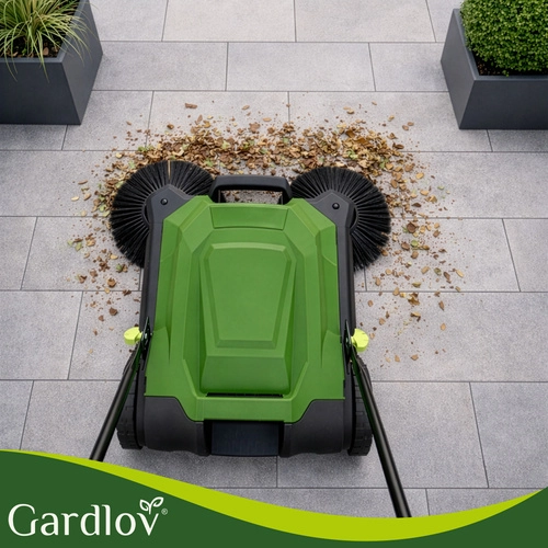 Den praktiske manuelle fejemaskine GARDLOV Nexo er designet til hurtig og grundig rengøring af udendørsarealer – fra belægningssten og gårdspladser til terrasser. Takket være 3-børstesystemet (2 side- + 1 valsebørste) opfanger den støv, blade og småsten, også langs kanter og i hjørner. Den robuste konstruktion og den store 24 l beholder sikrer problemfri drift med sjældnere tømning.
