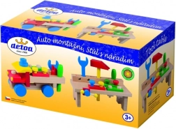 Detoas træværkstedsbord med værktøj er et fremragende udgangspunkt for små gør-det-selv-eksperter. Børn lærer grundlæggende håndtering af værktøj, træner hånd-øje-koordination og udvikler logisk tænkning ved at skrue og samle.