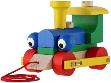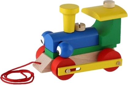 Dette blinkende træklokomotiv i kvalitets træ giver børn glæde ved bevægelse og deres første erfaringer med montering. Med den medfølgende træskruetrækker kan små konstruktører øve fingerfærdighed og logisk tænkning, mens de leger.