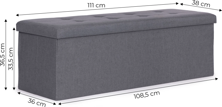 Den holdbare MDF-plade sikrer stabilitet og lang levetid, mens den bløde polstring og det polstrede betræk giver god siddekomfort. Bænkens maksimale bæreevne er 80 kg.